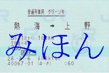 | 自由席グリーン券。 | 2階席からの車窓風景。 |