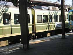 全国人権・同和教育研究集会参加のため、長野に行きました。昼休みの時間に余裕があったので、善光寺に行きました。歩いていけなくもなさそうでしたが、ここは一応、長野電鉄を利用。長野電鉄はイモムシみたいな形のイメージがありましたが、乗ったのは普通の通勤型電車。どうやら、もと東急の車両だそうです。隣のホームの特急列車は、電車ファンはおなじみの小田急ロマンスカー(乗ったことないけど)。ちなみにロマンスカーの隣のホームに停まっている列車は、もと営団地下鉄の車両だそうです。