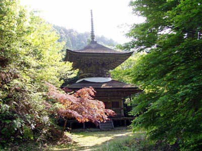 | 多宝塔。1711年、佐々木高綱建立。ご本尊は、釈迦如来。檜皮ぶきの多宝塔はめずらしいそうです。 | 本尊の釈迦如来像。こちらも「花祭り」で扉が開けてありました。普段は扉は閉まっています。 |