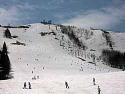 今日は本当にいい天気。暑いくらいでした。気温は山頂で12度。でも前日は、おそらく雪が降っていた模様。相変わらず雪がいっぱいで、北壁も地肌ひとつ見えていません。一応営業最終日ということでスキー客が詰めかけ、駐車場は思った以上にたくさんの車でした。リフト待ちというものを久しぶりにしました。パノラマからの山頂ペアリフトで、最大5分。でもたいていは3分ほどでしょうか。他のリフトは、1分以内。気温が暖かく、滑っていても板にブレーキがかかってしまう感じで、シーズン終わりの雪という感じでした。来週の土日のみ、特別営業するらしいです。うーん、どうしようか悩んでしまいます。
